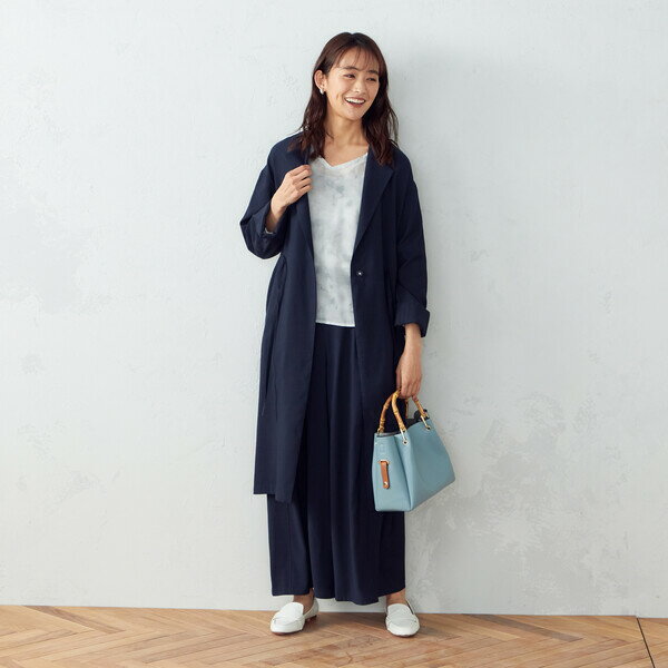 \薄手のライトアウター/ウエスト紐を絞って、チュニックワンピースとしても着こなしができます。