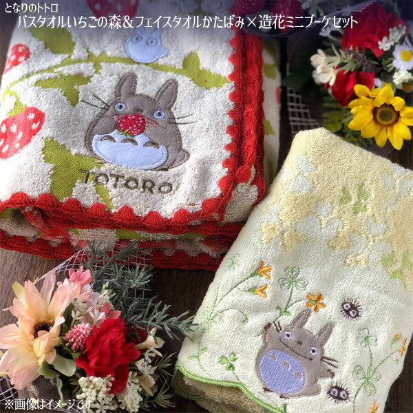 ジブリ グッズ となりのトトロ バスタオル いちごの森&フェイスタオルかたばみ×造花ミニブーケセット スタジオジブリ トトロ母の日 ホワイトデー