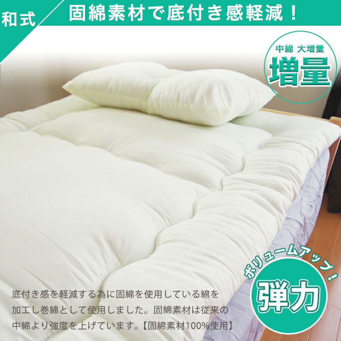 固綿素材は従来の巻綿素材より強度を上げてますが、底付き感を気になる方は、もう1枚敷布団を重ねてご使用になる事をおすすめします。