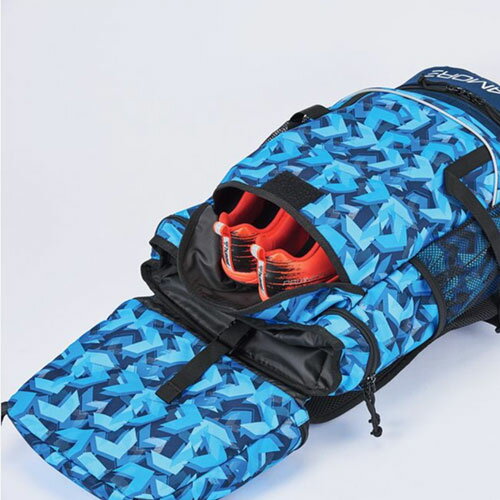 ボール収納は上部に配置、下部に保冷保温ポケット搭載の多機能バックパック。