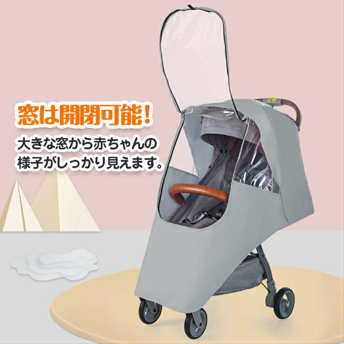 ベビーカー用 レインカバー 雨除け 梅雨対策 防寒 花粉 ほこり 防止 防水 通気性 視界 遮らない メッシュ通気窓付き