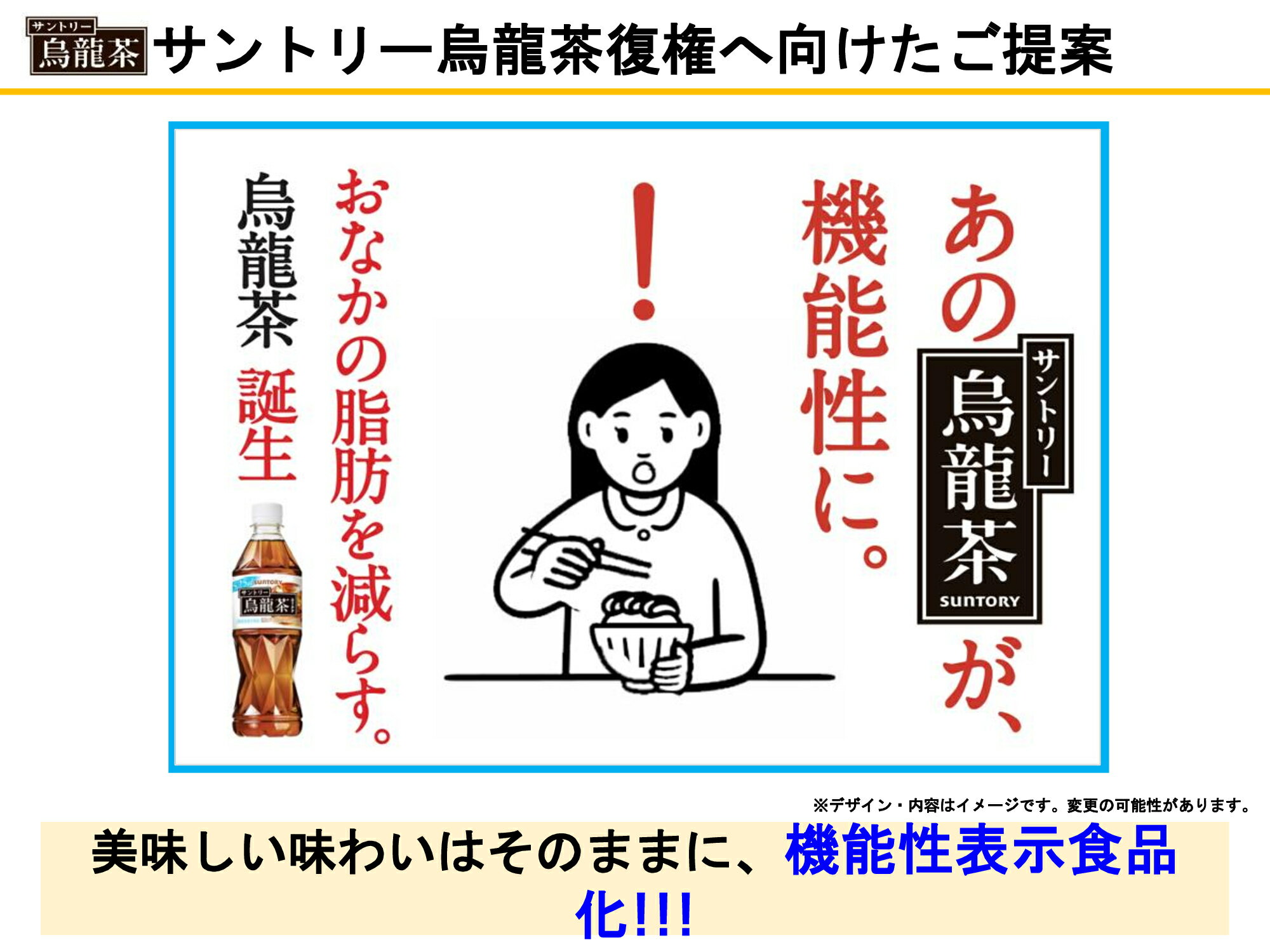 メーカー サントリービバレッジソリューション株式会社 ■製品特長 従来より含まれていた“ウーロン茶重合ポリフェノール”の働きに改めて着目し、コクがあるのにスッキリとキレのある美味しさはそのままに、“おなかの脂肪を減らす”という具体的な届出表示を掲げた機能性表示食品へとリニューアルすることで、烏龍茶のもつ健康的なイメージを明確な言葉でお伝えするとともに、トップブランドとして烏龍茶市場の活性化を目指します。